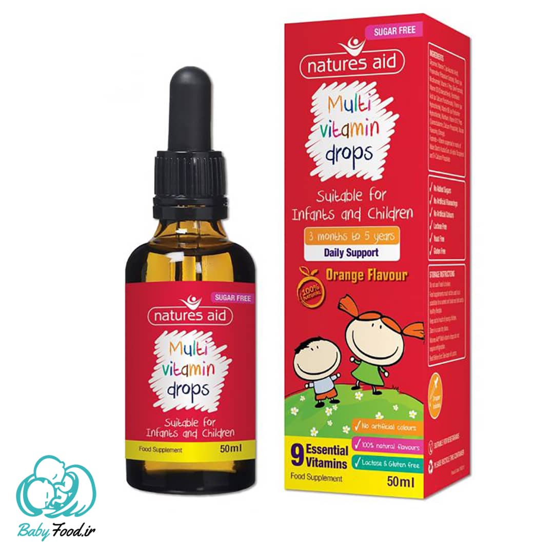 مولتی ویتامین نیچرز اید یک مولتی ویتامین یک مولتی ویتامین سبک و عالی برای کودکان ۳ ماه تا ۵ سال است که حاوی ویتامین های A، B، C، D میباشد که نیاز های کودکان نسبت به ویتامین هارو در این سنین تامین میکند
